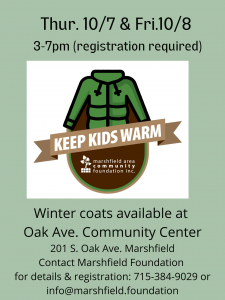Keep Kids Warm, The Marshfield Area Community Foundation event, continues to grow! The event takes place Thursday, October 20th at the Oak Ave. Community Center and we already have 450 people registered.